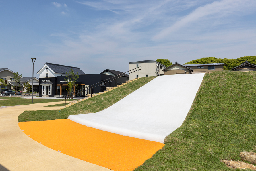 「ここまき山」は、小牧駅からシンボルロードを小牧山に向かって歩くと見える公園のシンボル的存在。市民に愛される小牧山をイメージし、山の稜線と重なって見えるデザインにしました。